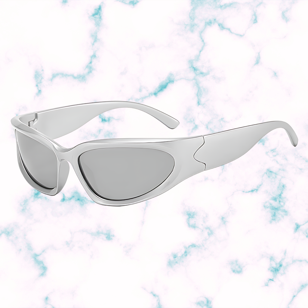 With its wrap-around silhouette and mirrored grey tone, SPACE Y2K complements oval and heart-shaped faces — creating a sculpted, futuristic look with aerodynamic precision.